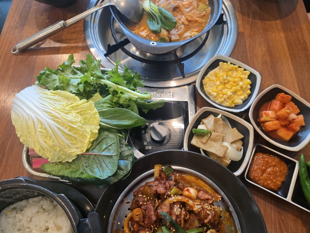 쌈채소가 정말 신선했고 셀프바가 있어 추가 이용이 편리했습니다. 갖지은 밥과 두루치기 다양한 쌈채소와 청국장을 끓이며 바로 먹을 수 있어 그 맛이 더욱 조화로웠습니다. 매장은 환기가 잘돼 쾌적했고 회전율이 빨라 대기 시간이 짧았던 점도 좋았습니다.